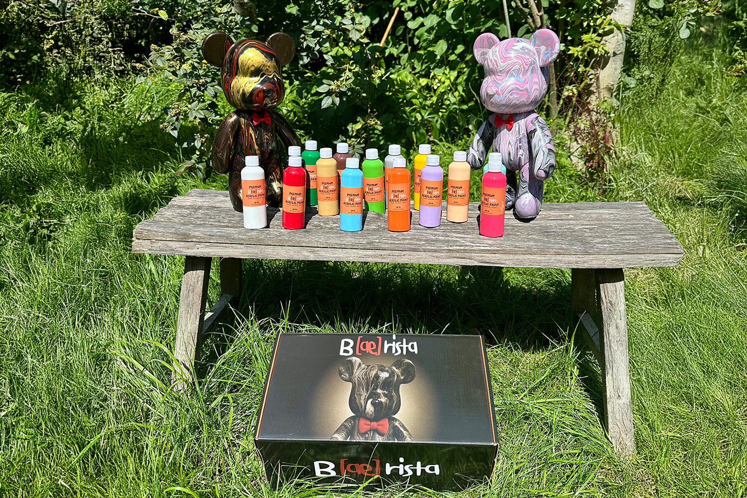 Die Idee entstand aus dem Wunsch, kreativ zu sein. Ohne Druck, einfach mit den Händen. Inspiriert von der fließenden Bewegung, mit der ein Barista Milch in den Kaffee gießt, dachten wir: Warum nicht mit Farbe – auf einem Bären?