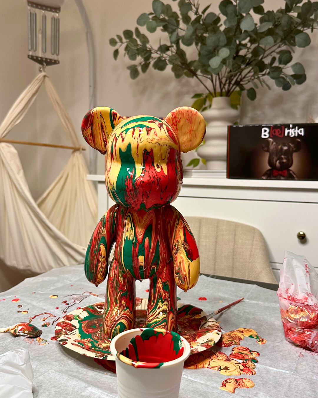 Lass die Farbe fließen und gönn deinem Bären eine Pause bis alles trocken ist. Trust the process!